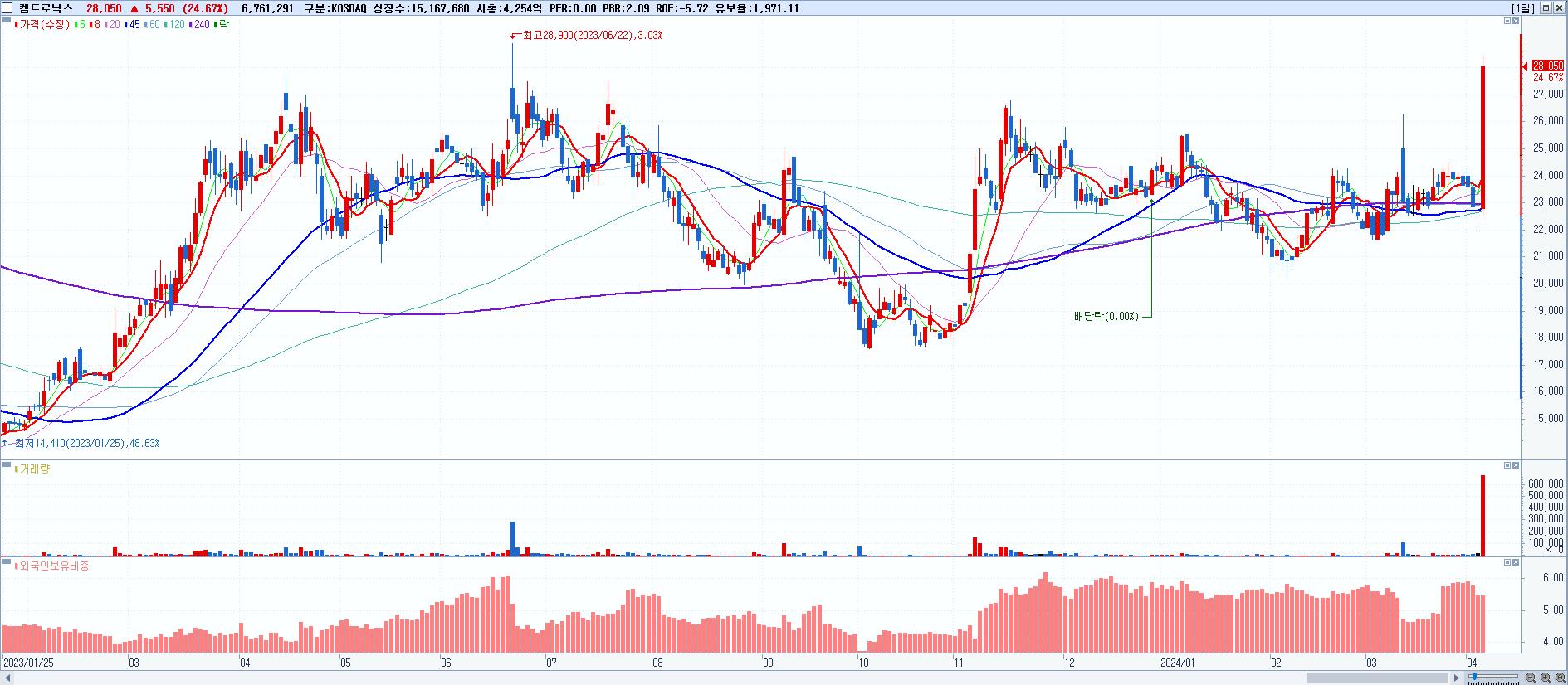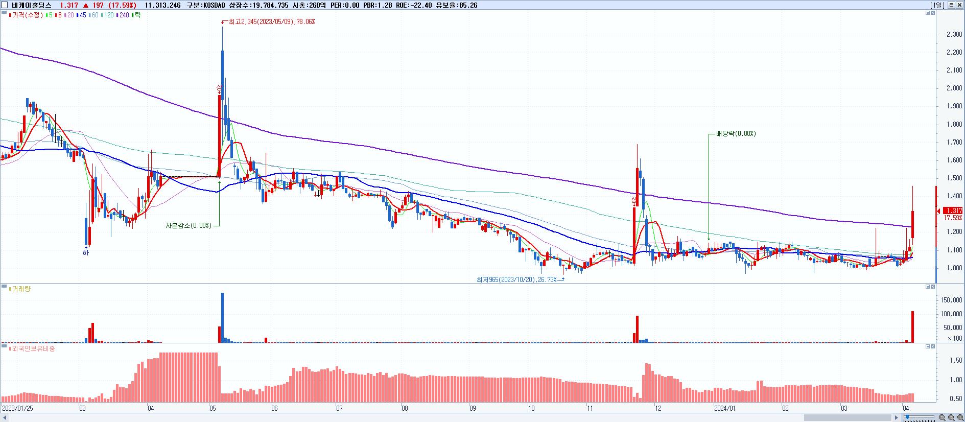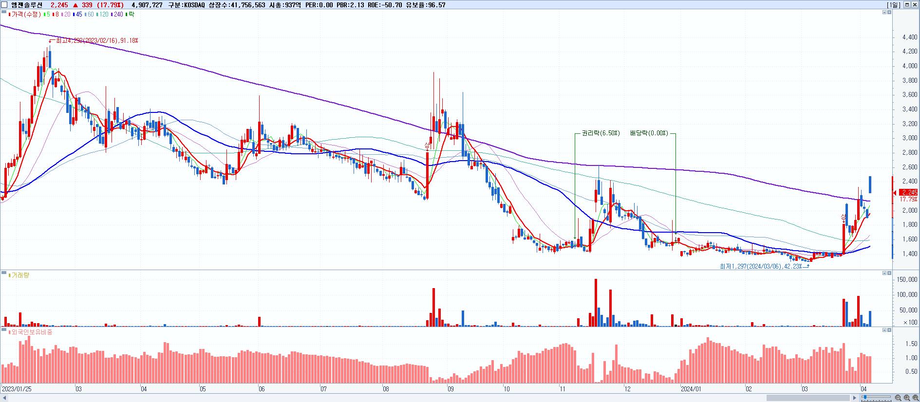 시총: 2,503억 거래량: 696,725 거래대금:226억