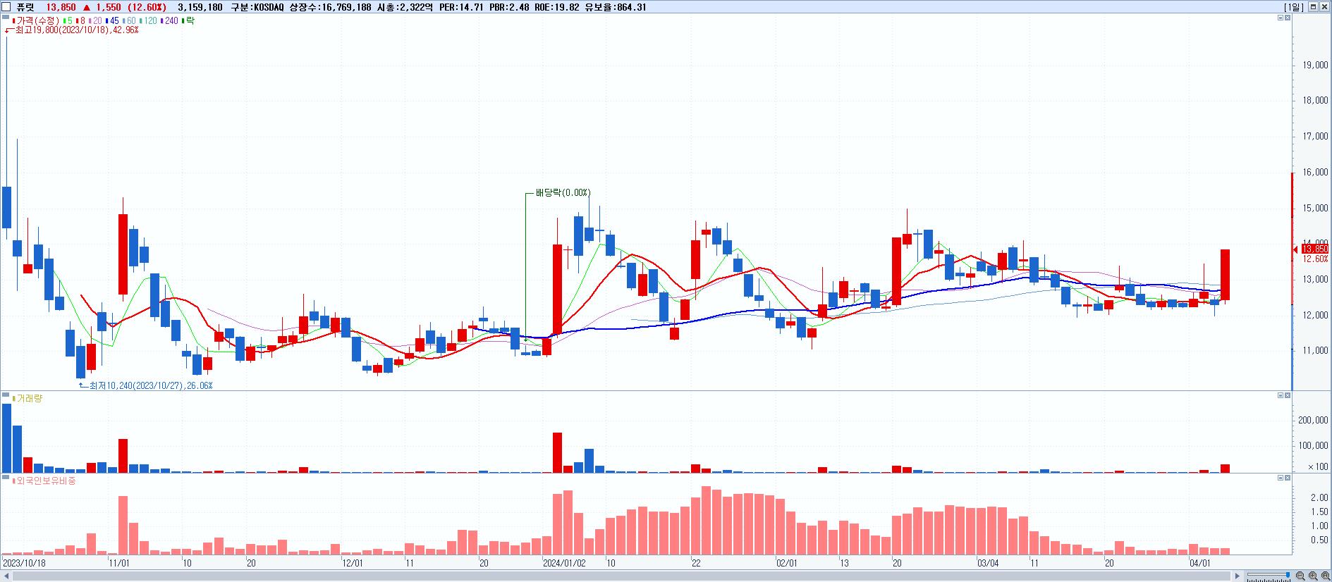 시총: 10,656억 거래량: 783,726 거래대금:354억