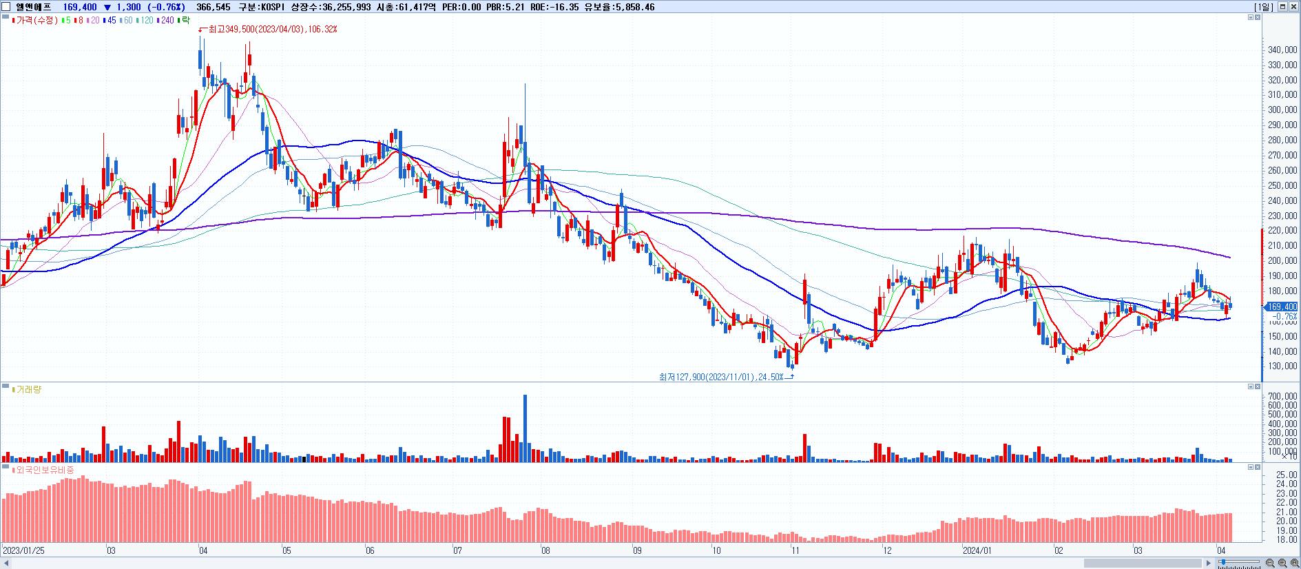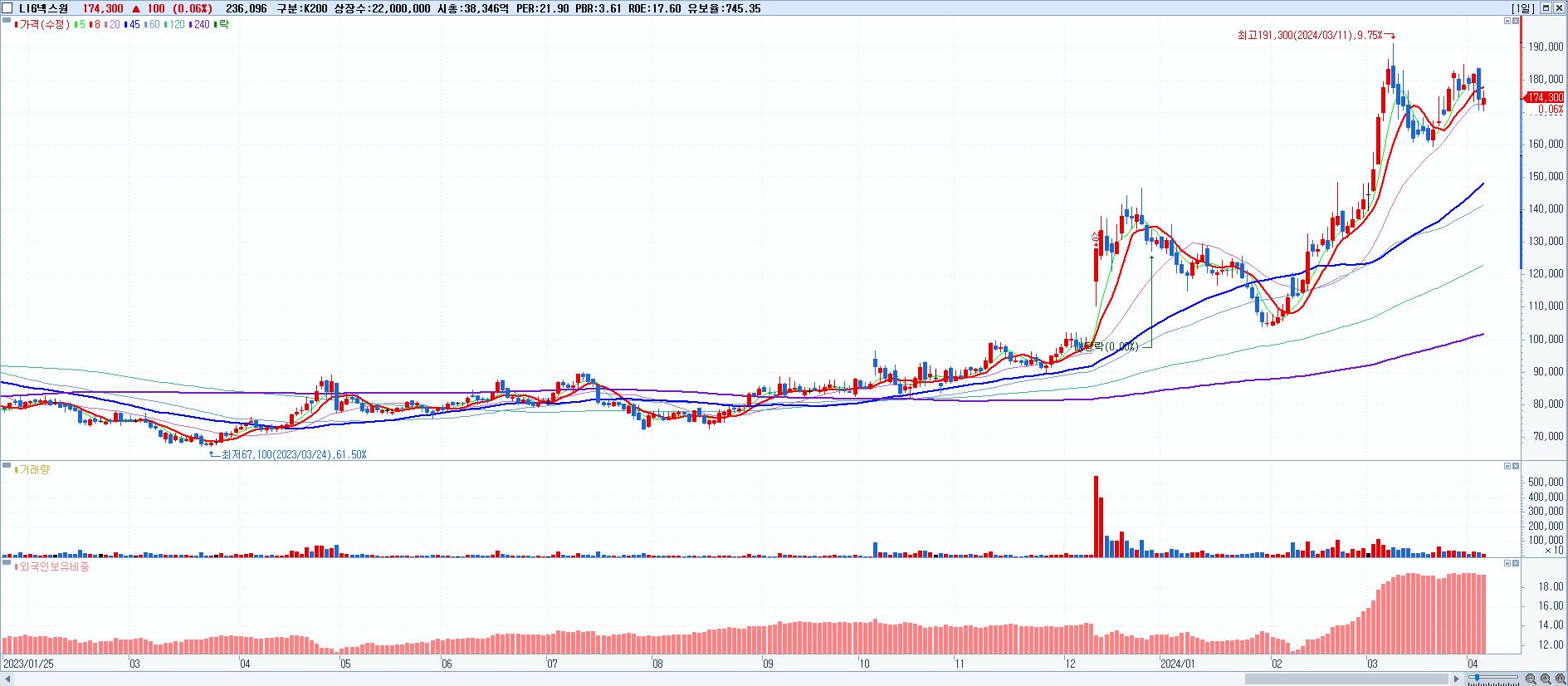 - 엘앤에프 (169,400원 ▼ -0.76% , 시총: 61,418억, 외국인 순매수 거래금:85억)