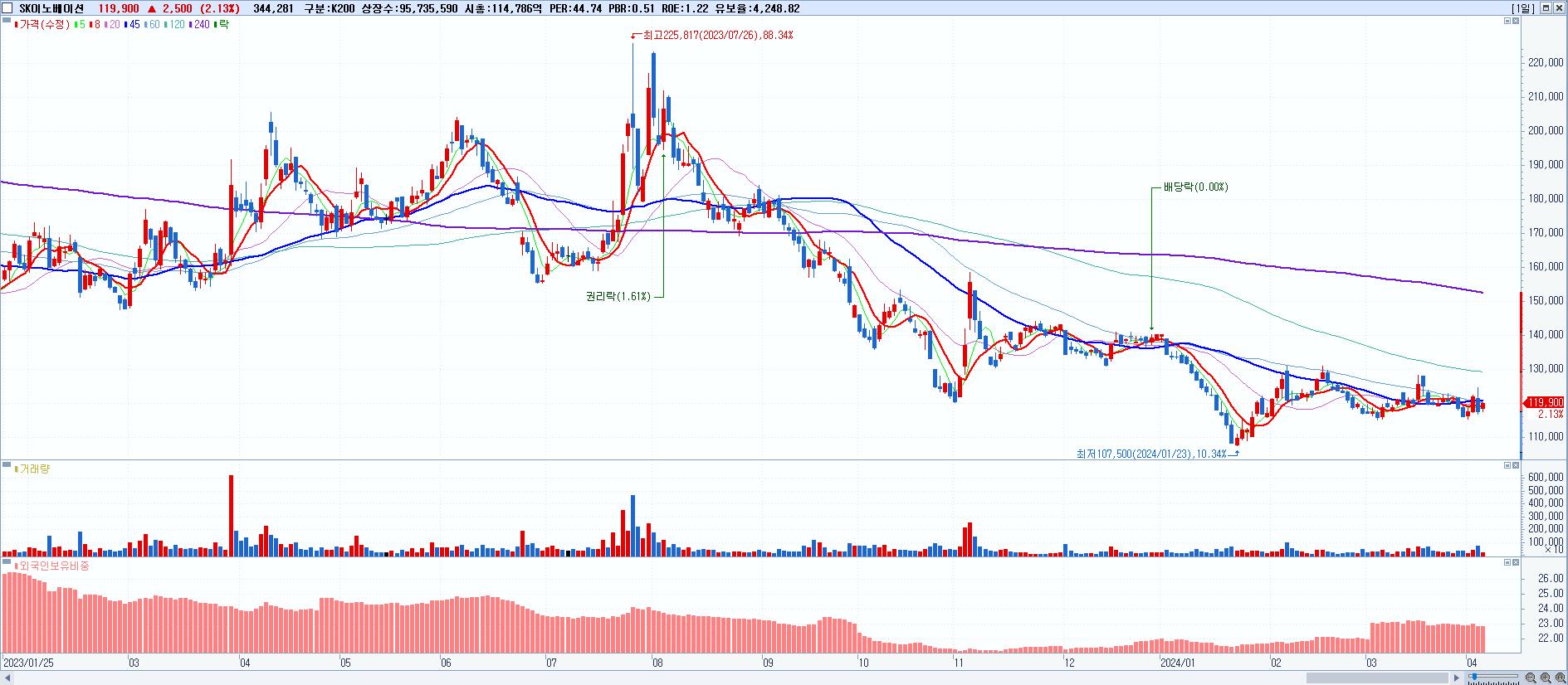 - SK이노베이션 (119,900원 ▲ 2.13% , 시총: 114,787억, 외국인 순매수 거래금:66억)