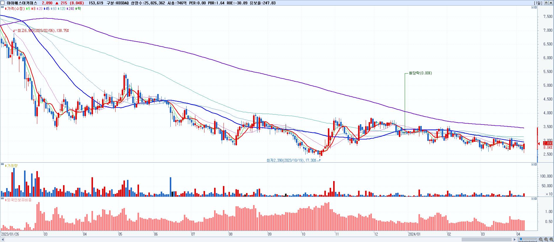 - 아이에스이커머스 (2,890원 ▲ 8.04% , 시총: 746억, 거래량: 153,619, 거래대금:4억)