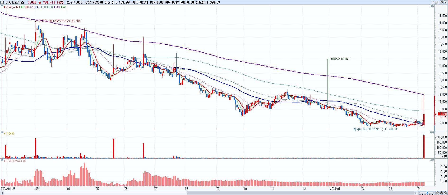 시총: 746억 거래량: 153,619 거래대금:4억