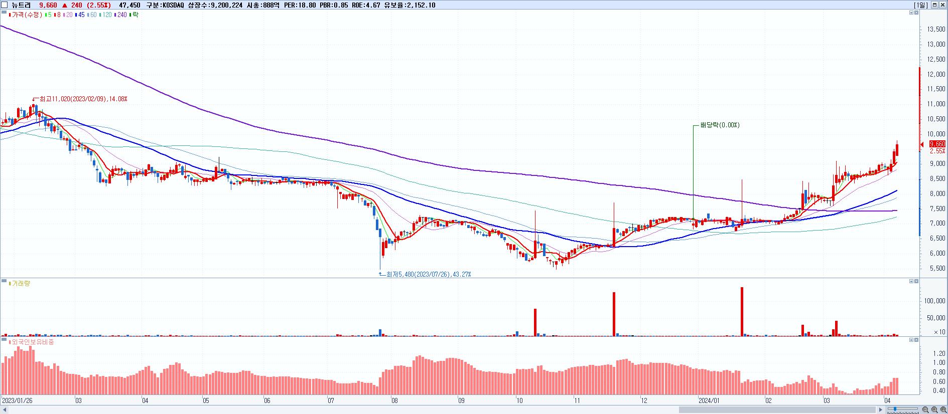 뉴트리 9,660원 ▲ 2.55% (KOSDAQ, 270870)
