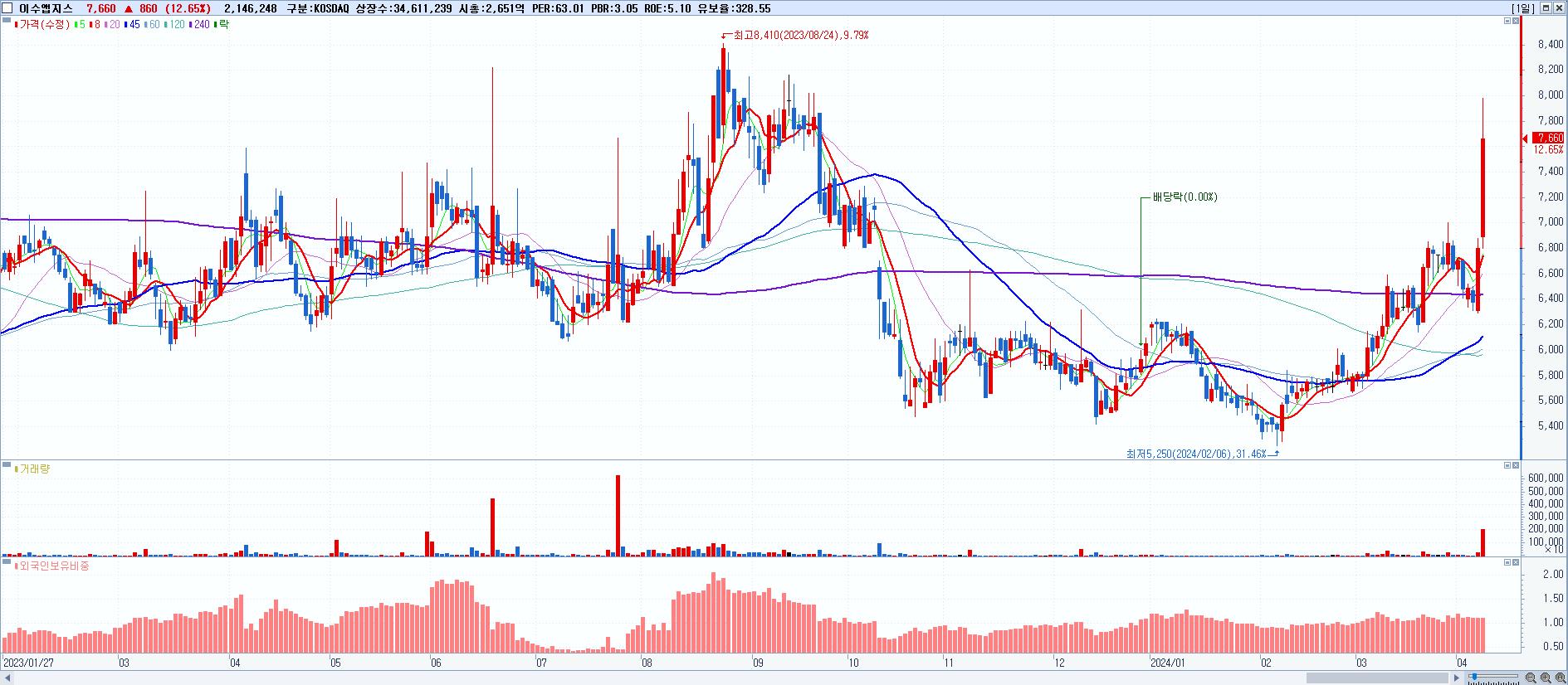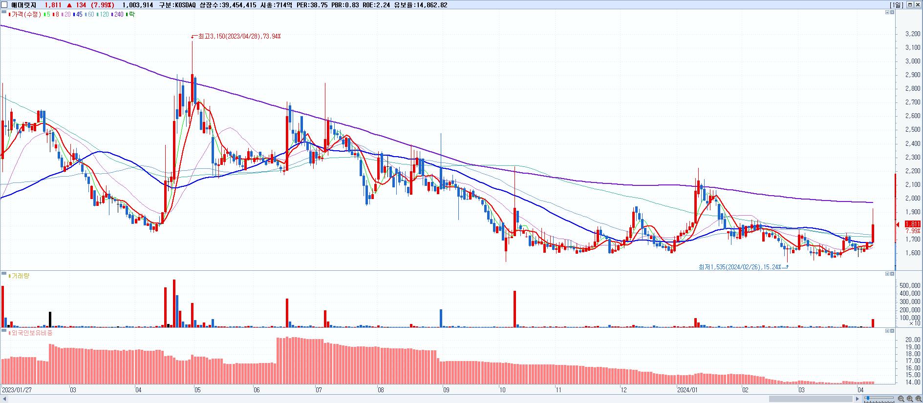 시총: 2,516억 거래량: 2,591,902 거래대금:902억