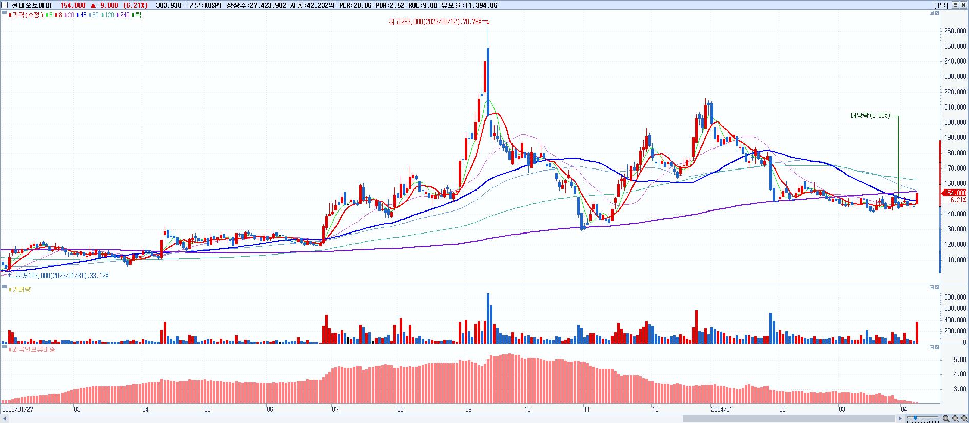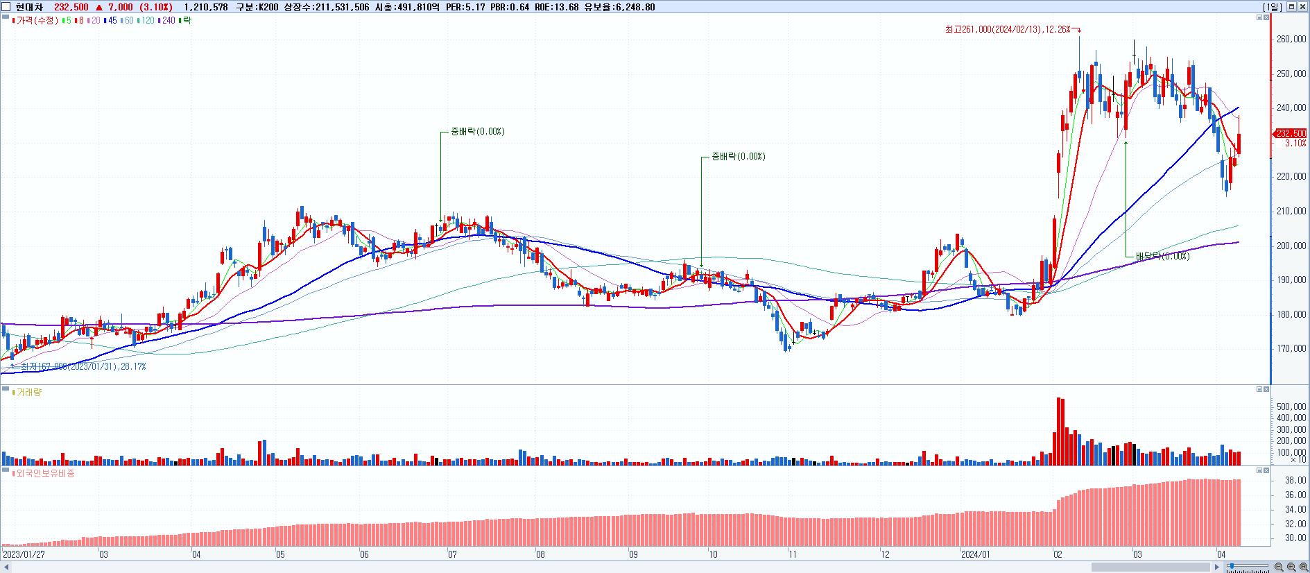 2.현대차 232,500원 ▲ 3.1% (KOSPI, 005380)