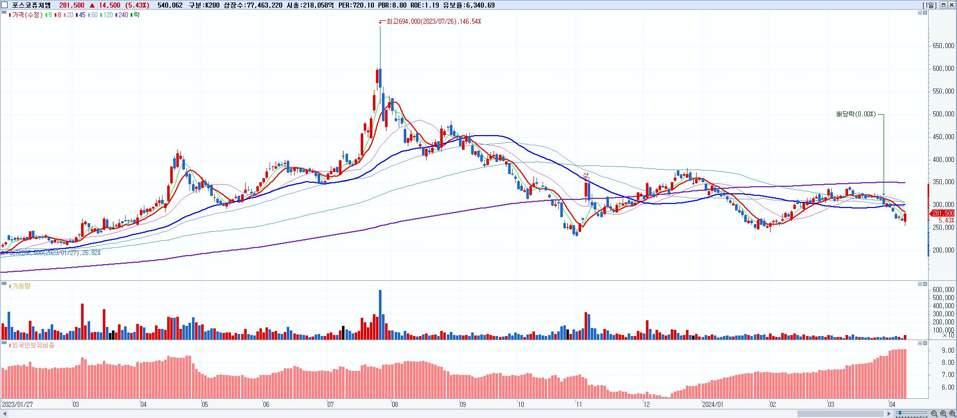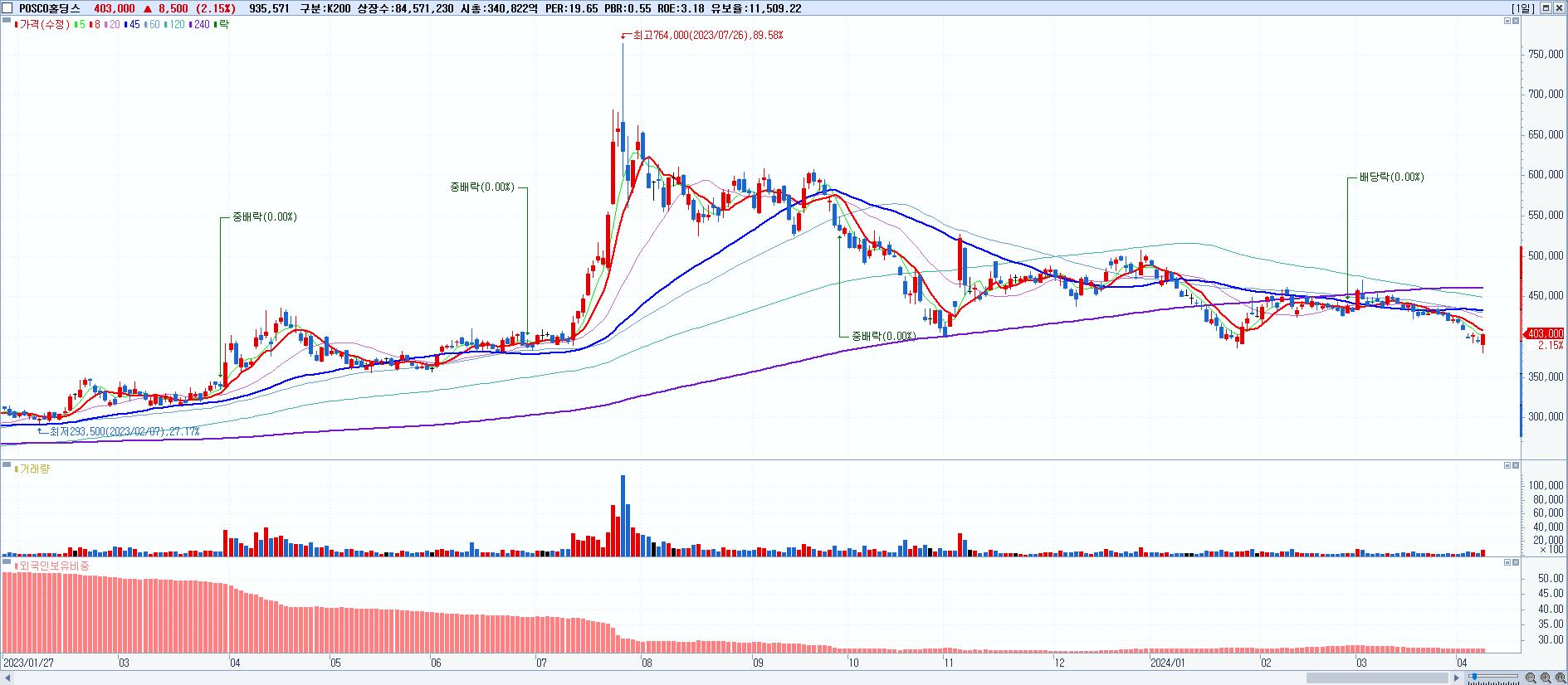 - POSCO홀딩스 (403,000원 ▲ 2.15% , 시총: 340,822억, 외국인 순매수 거래금:255억)