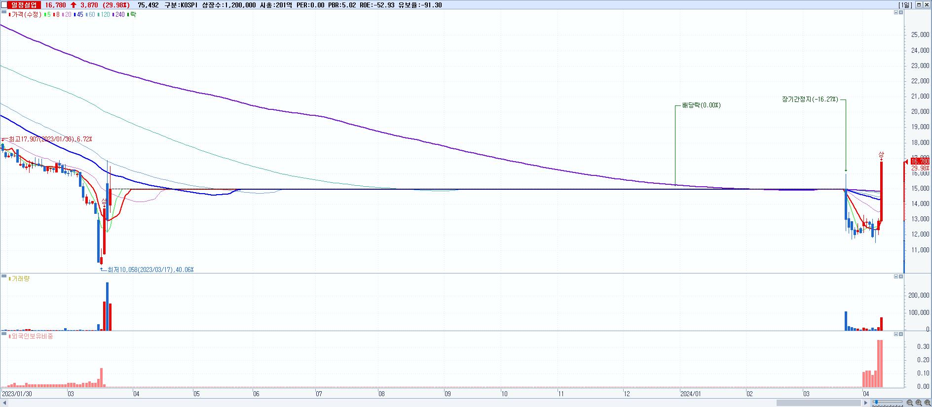 2.일정실업 16,780원 ▲ 29.98% (KOSPI, 008500)