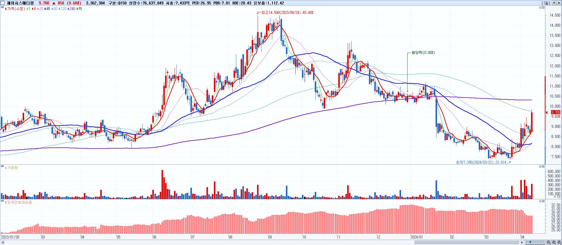 시총: 13,973억 거래량: 8,124,826 거래대금:1,491억