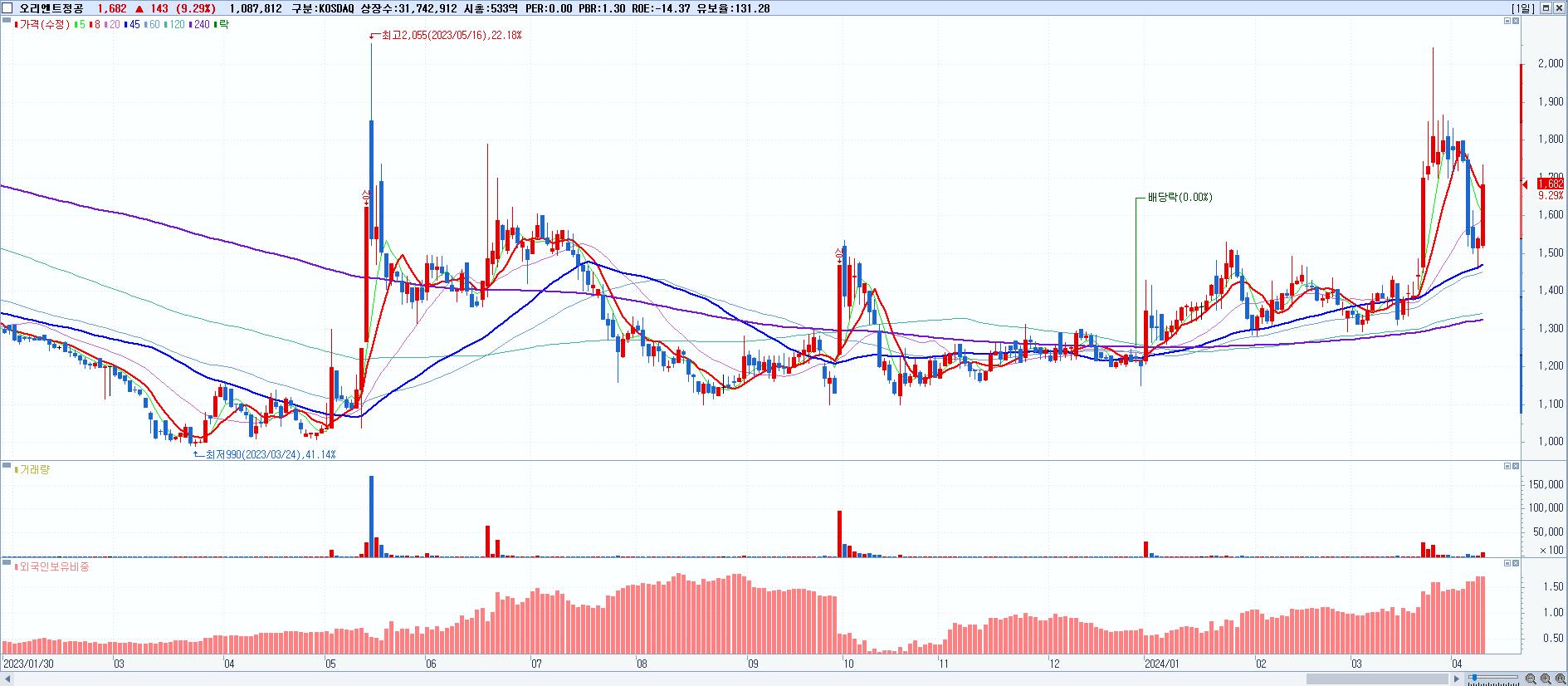 29.오리엔트정공 1,682원 ▲ 9.29% (KOSDAQ, 065500)