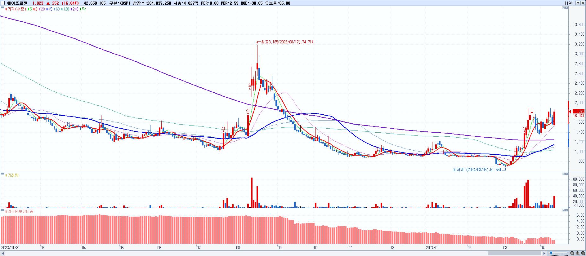 시총: 1,700억 거래량: 3,190,614 거래대금:241억