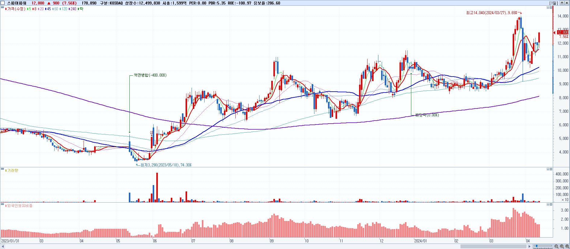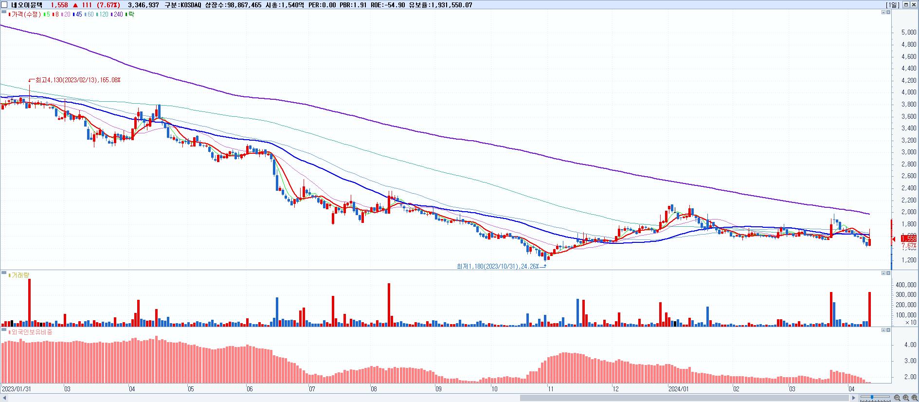 시총: 1,540억 거래량: 3,346,937 거래대금:54억