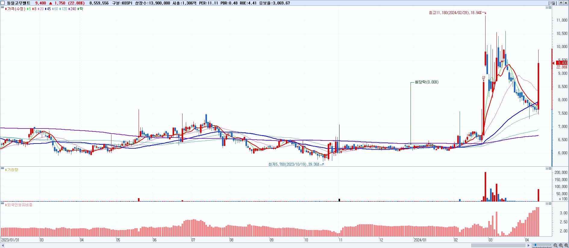 시총: 1,138억 거래량: 14,105,251 거래대금:664억