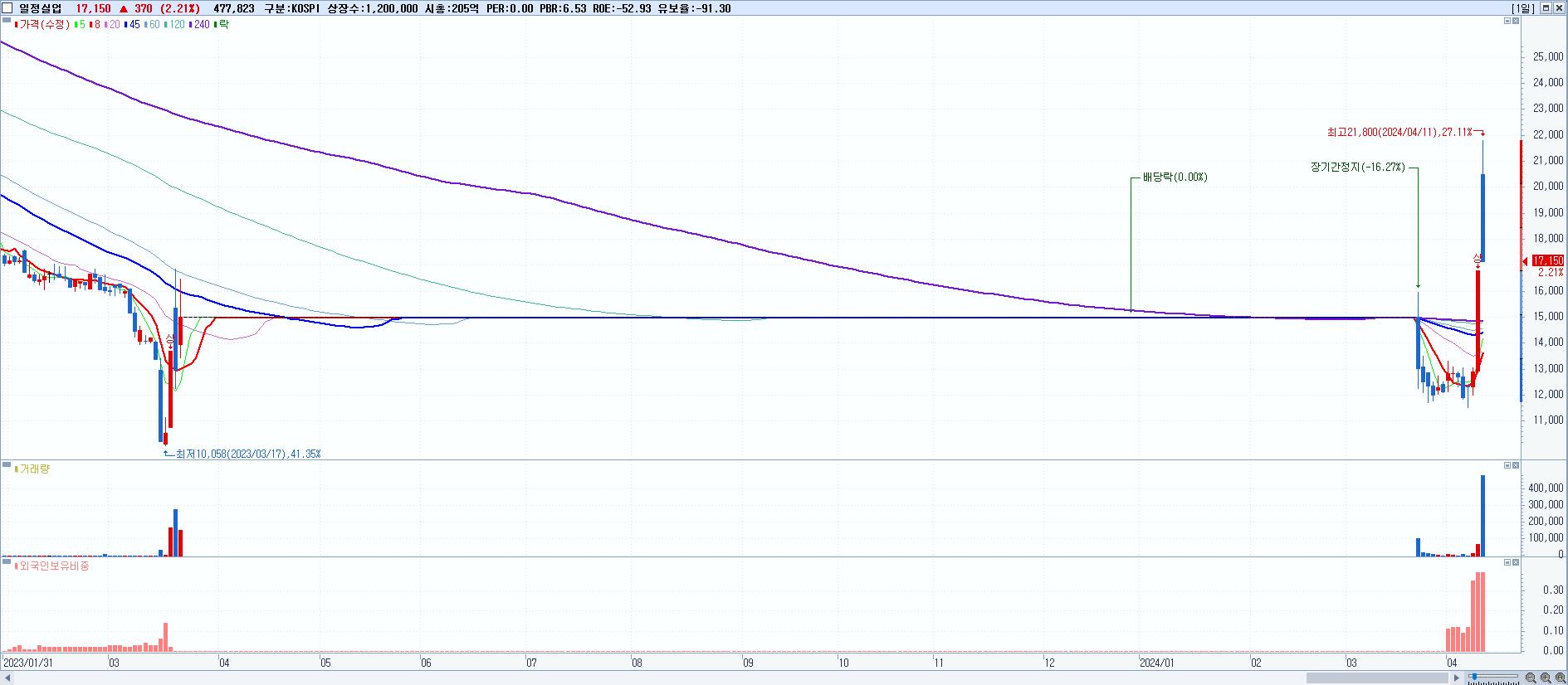 시총: 1,138억 거래량: 14,105,251 거래대금:664억