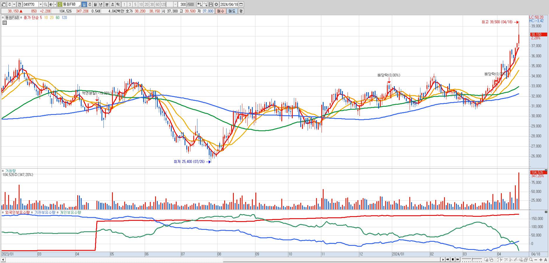 52주최고가(39,000원) 대비 0% (3일 연속 갱신중)