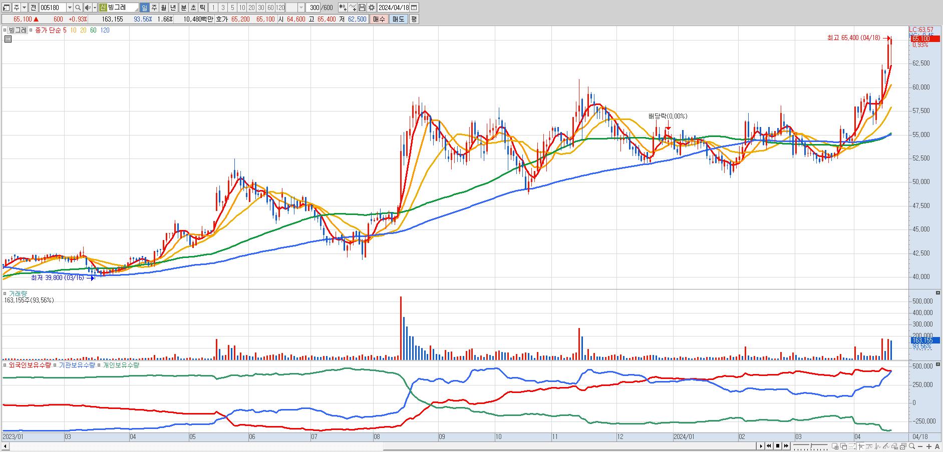 빙그레 65,100원 ▲ 0.93% (KOSPI, 005180)