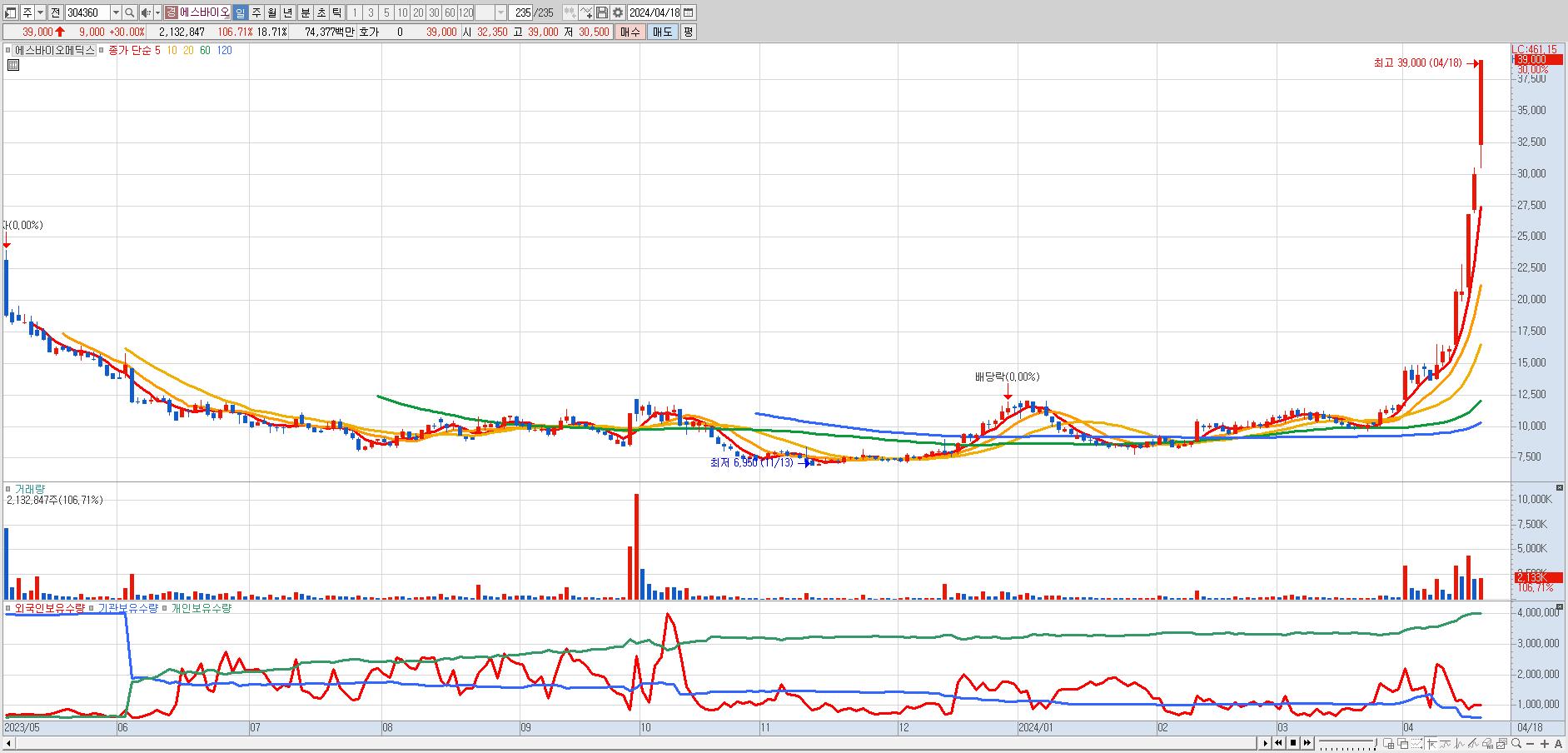 에스바이오메딕스 39,000원 ▲ 30% (KOSDAQ, 304360)