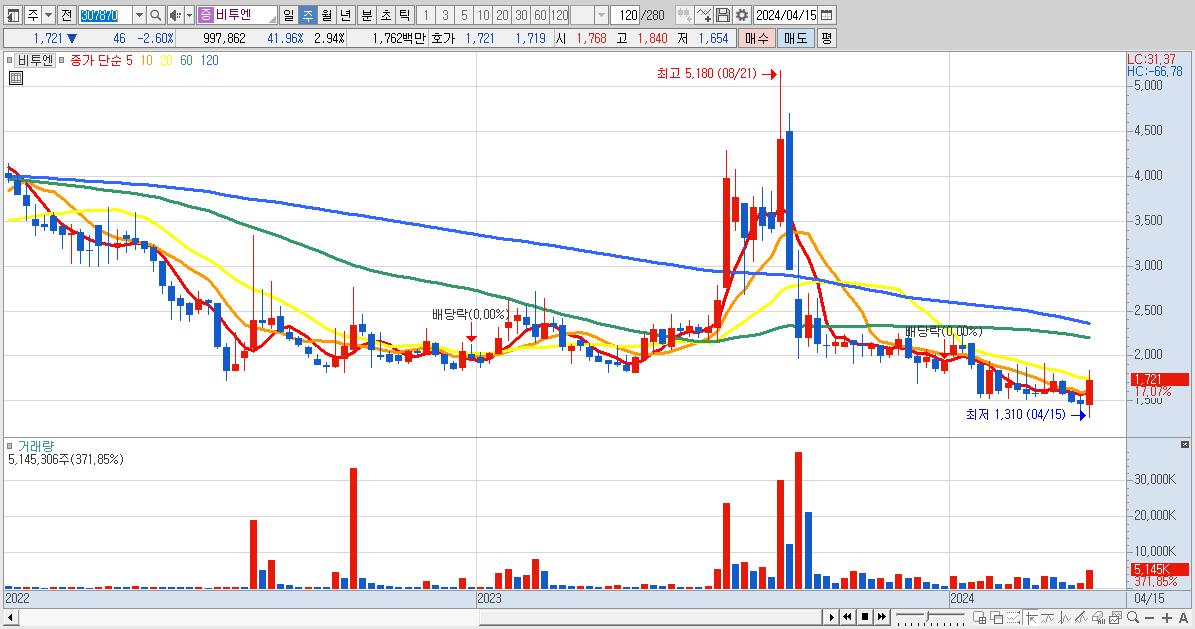 29.비투엔 1,721원 ▲ 17.07% (KOSDAQ, 307870)