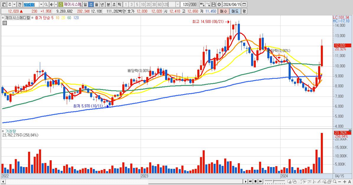 - 제이시스메디칼 (12,020원 ▲ 20.32% , 시총: 9,212억, 거래량: 23,762,279, 거래대금:2,722억)