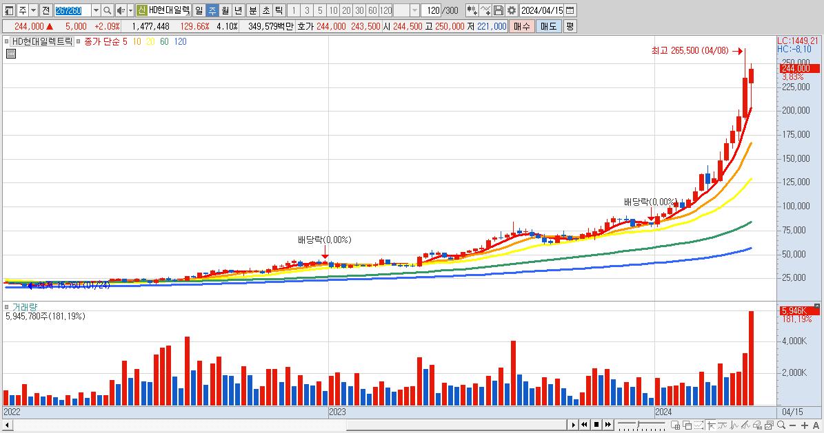 - HD현대일렉트릭 (244,000원 ▲ 3.83% , 시총: 87,955억, 거래량: 5,945,780, 거래대금:13,346억)