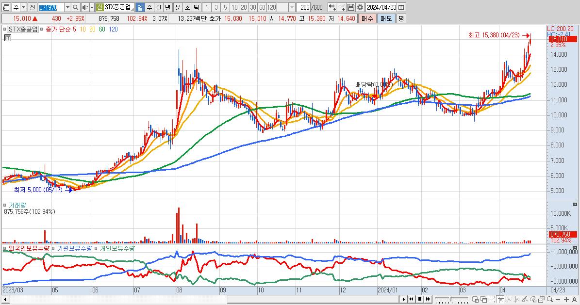 STX중공업 15,010원 ▲ 2.95% (KOSPI, 071970)