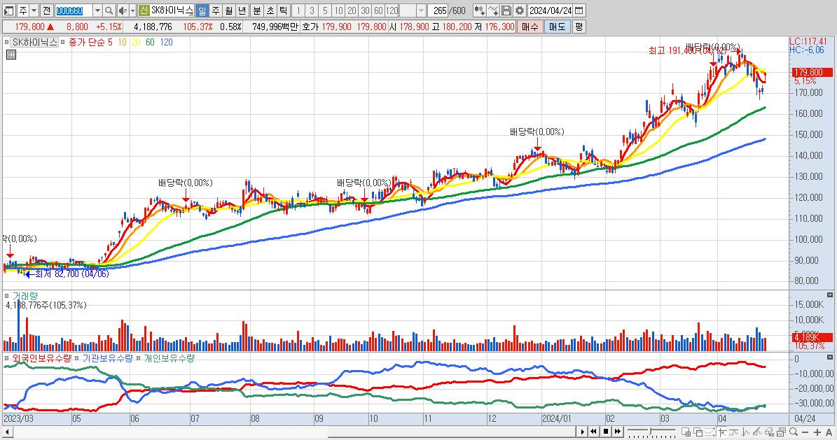- SK하이닉스 (179,800원 ▲ 5.15% , 시총: 1,308,948억, 외국인 순매수 거래금:857억)