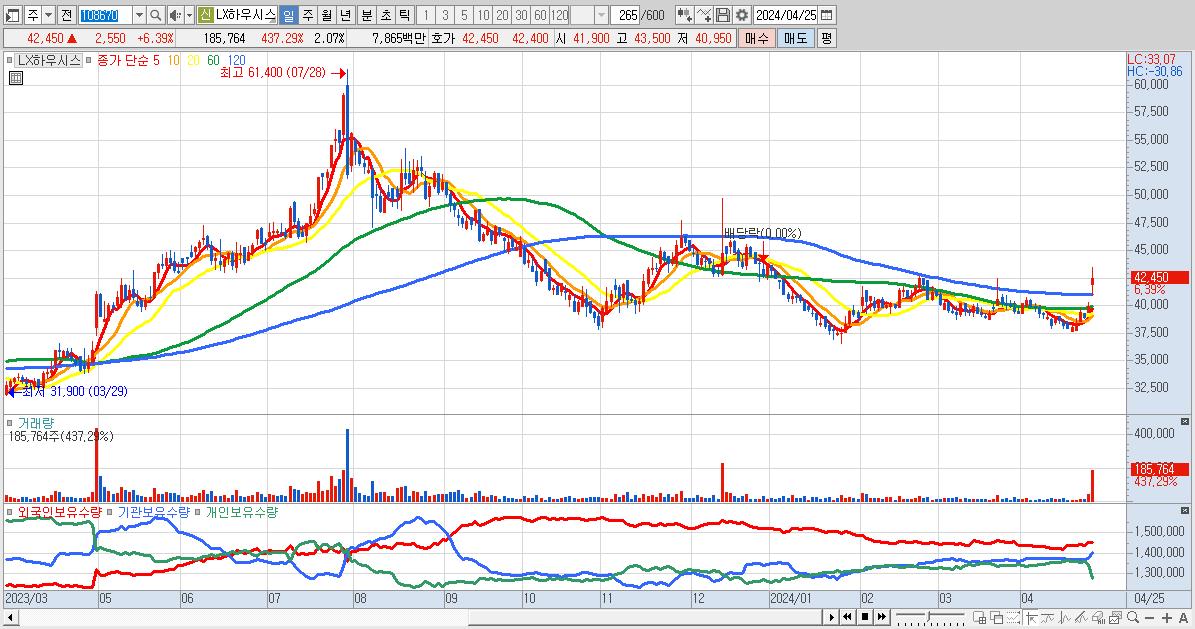 29.LX하우시스 42,450원 ▲ 6.39% (KOSPI, 108670)