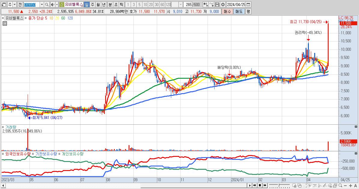 2.유비벨록스 11,580원 ▲ 28.24% (KOSDAQ, 089850)