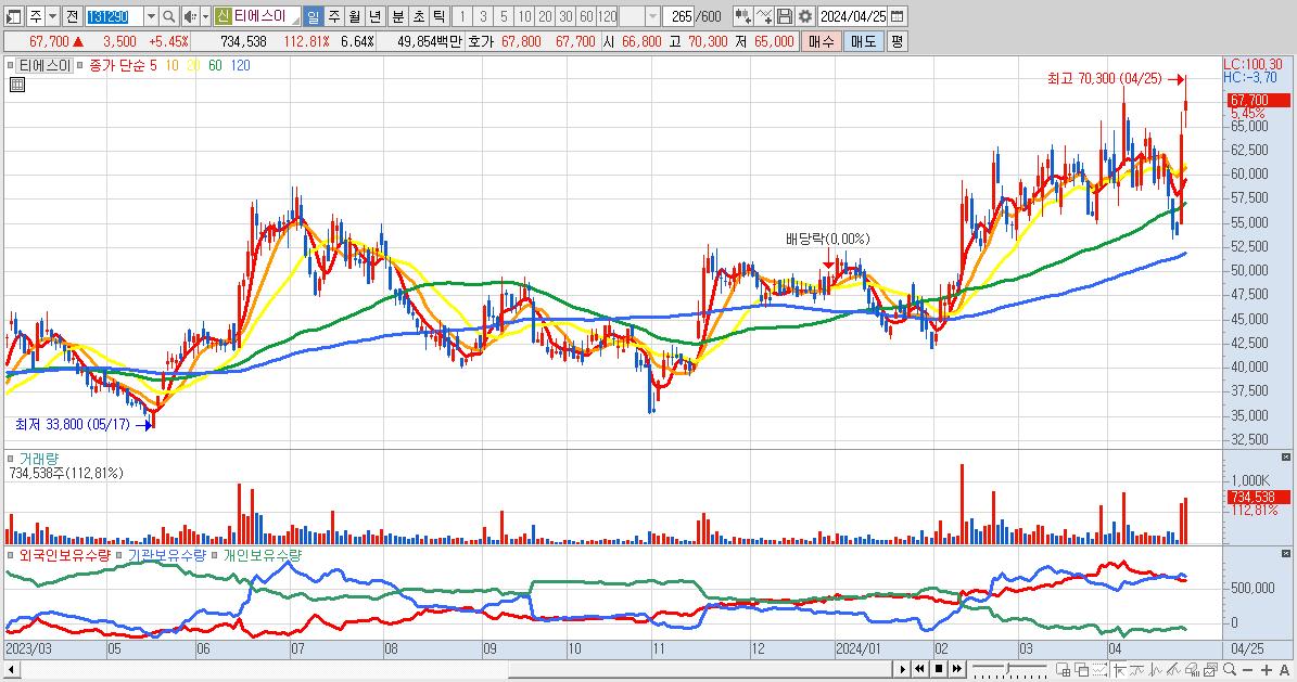 29.티에스이 67,700원 ▲ 5.45% (KOSDAQ, 131290)