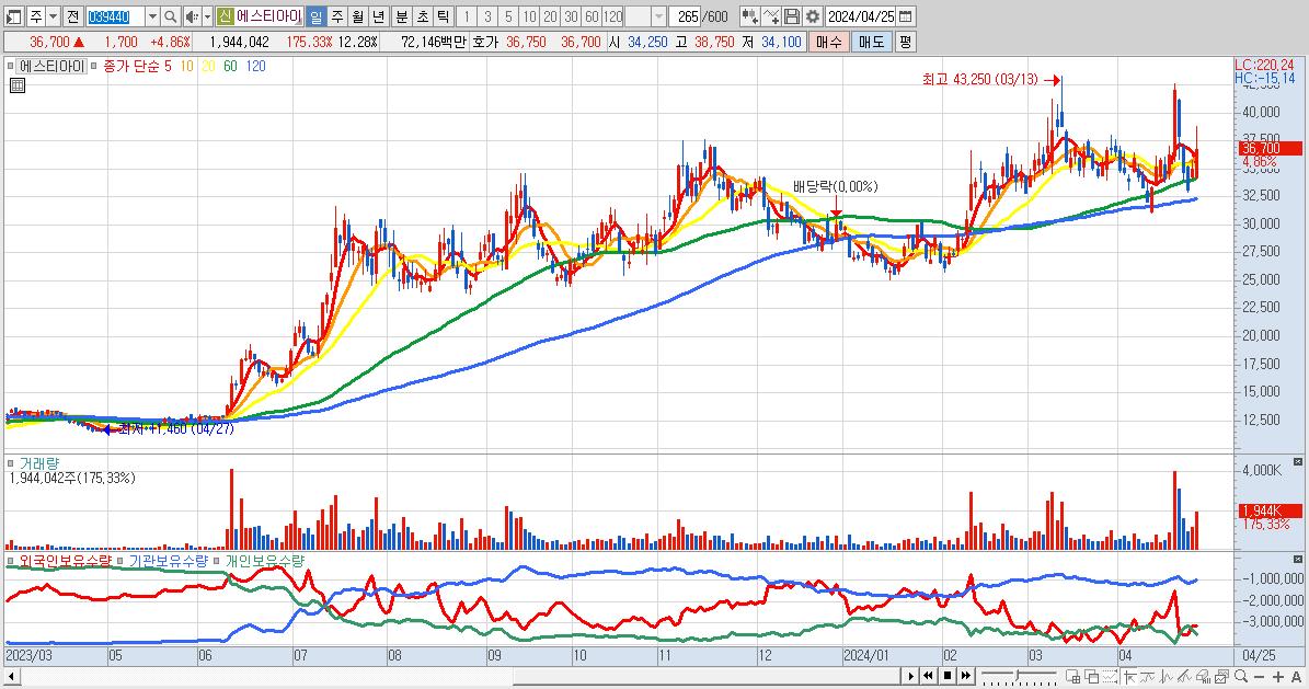 - 에스티아이 (36,700원 ▲ 4.86% , 시총: 5,810억, 외국인 순매수 거래금:35억)