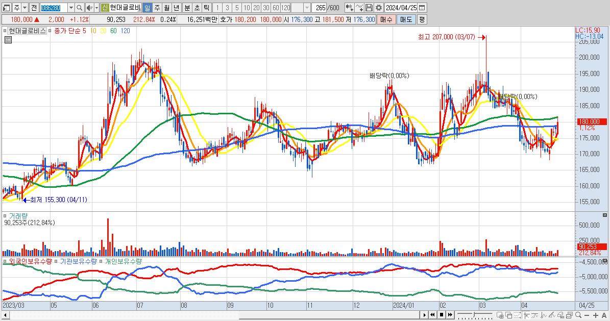 - 현대글로비스 (180,000원 ▲ 1.12% , 시총: 67,500억, 외국인 순매수 거래금:34억)