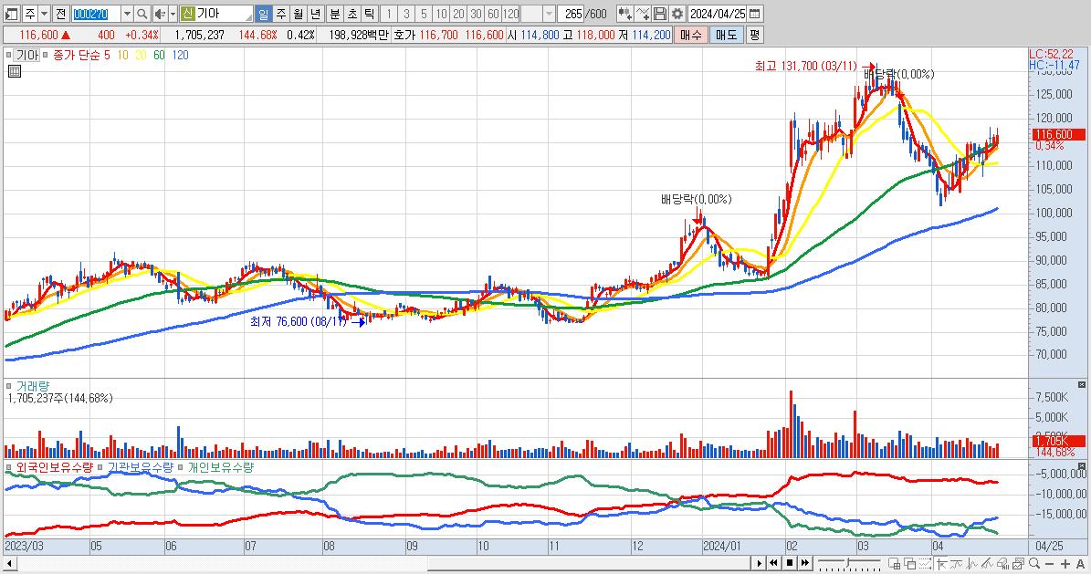 1.기아 116,600원 ▲ 0.34% (KOSPI, 000270)