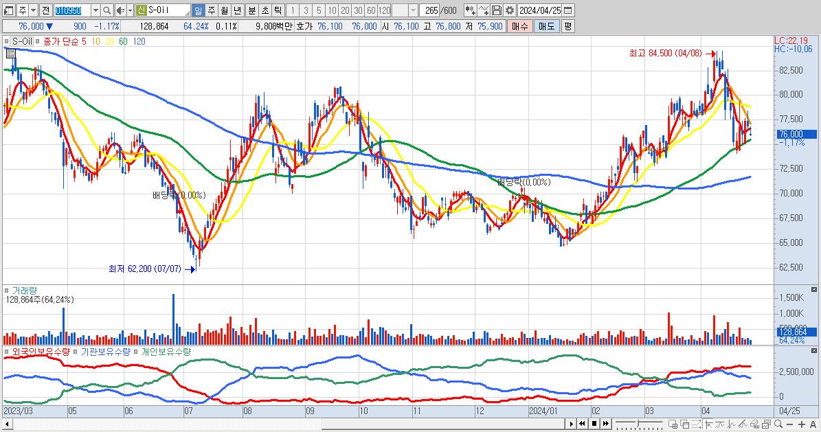 30.S-Oil 76,000원 ▼ -1.17% (KOSPI, 010950)