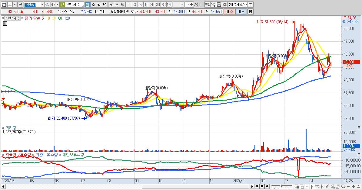 - 신한지주 (43,500원 ▲ 0.46% , 시총: 221,586억, 외국인 순매수 거래금:83억)