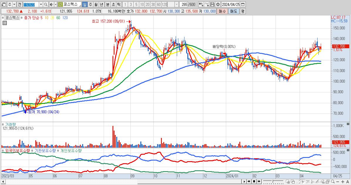 시총: 85,563억 거래량: 128,864 거래대금:98억