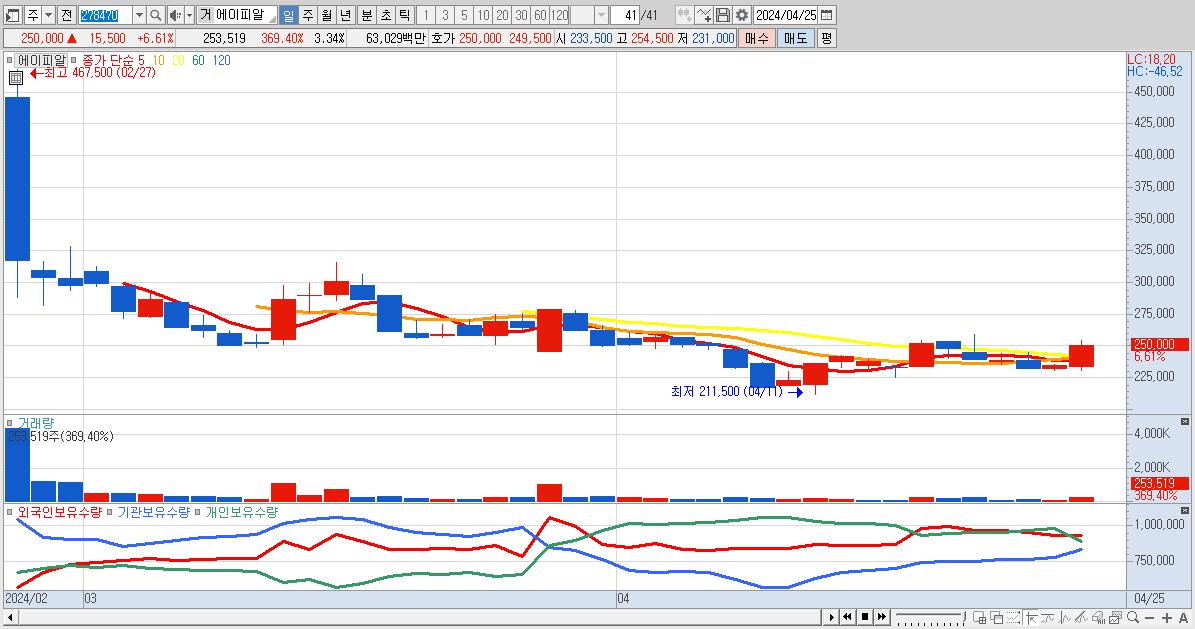 - 에이피알 (250,000원 ▲ 6.61% , 시총: 18,961억, 외국인 순매수 거래금:178억)