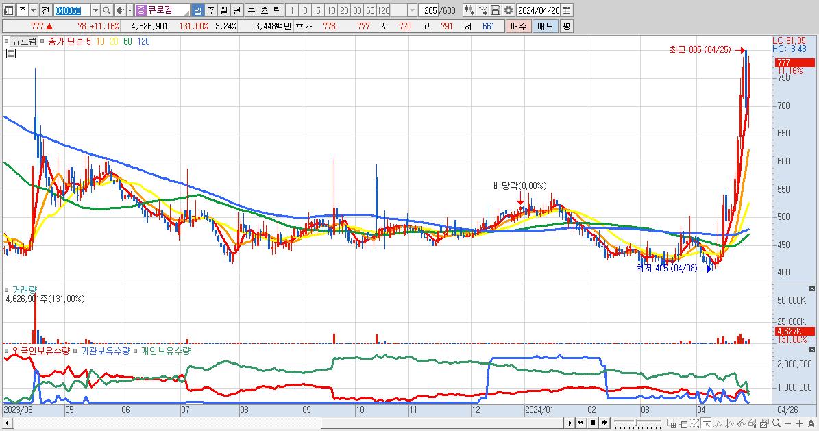30.큐로컴 777원 ▲ 11.16% (KOSDAQ, 040350)