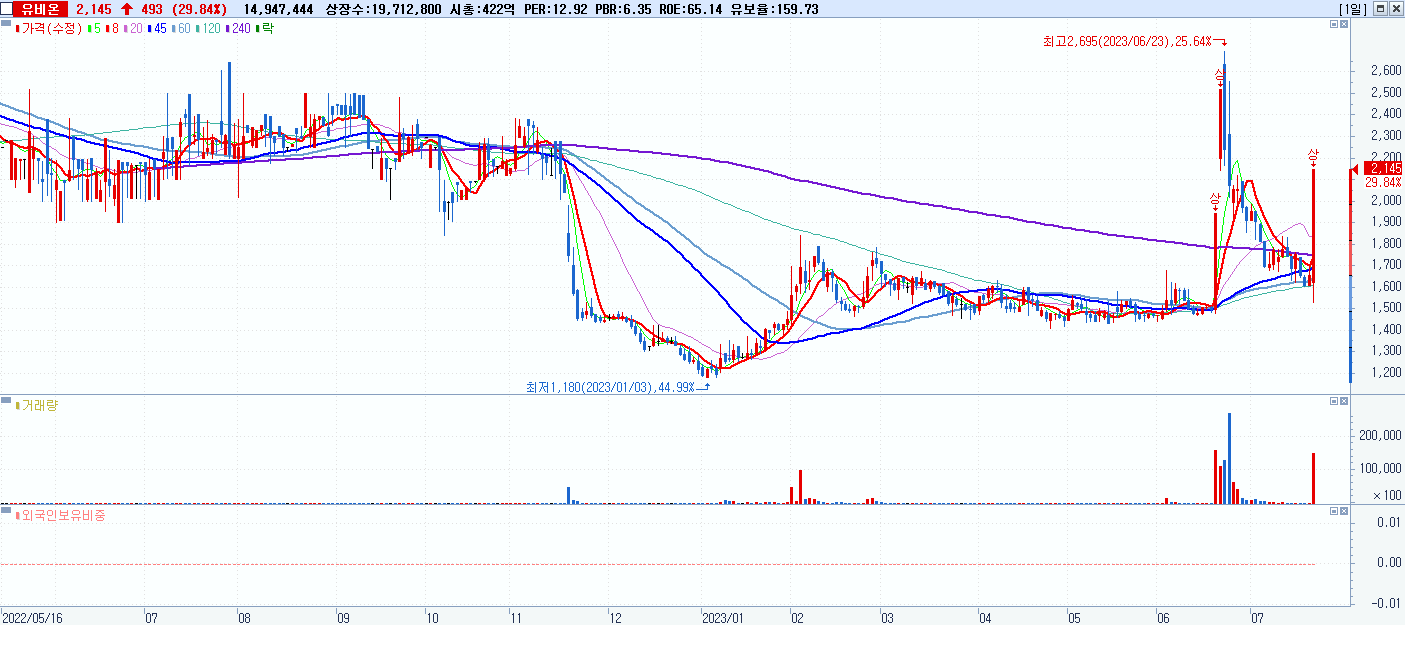 시총: 423억 거래량: 14,948,496 거래대금:295억