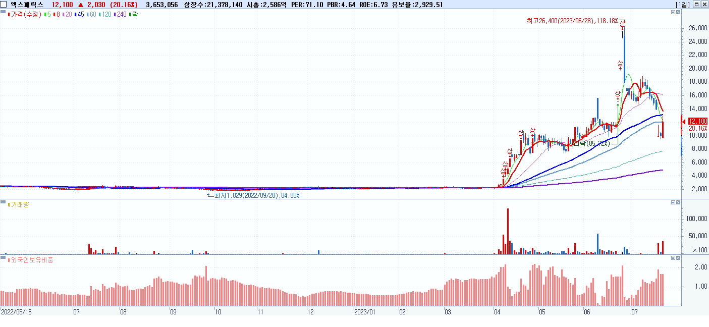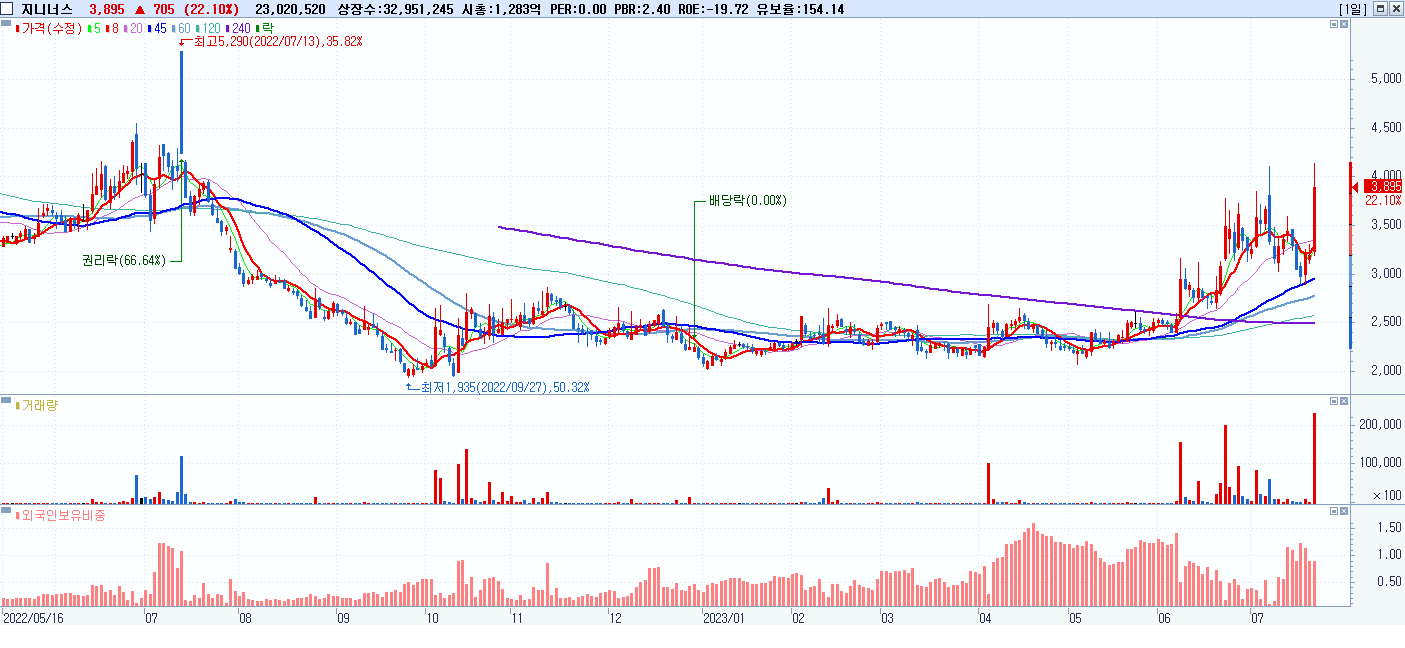 시총: 1,283억 거래량: 23,057,718 거래대금:880억
