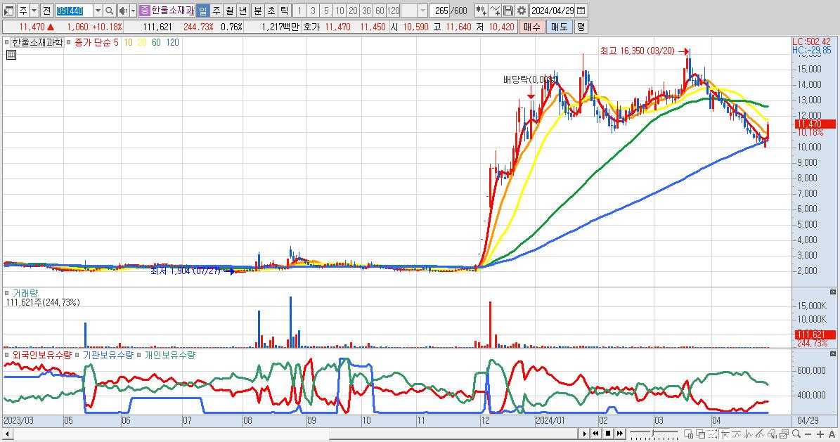 30.한울소재과학 11,470원 ▲ 10.18% (KOSDAQ, 091440)