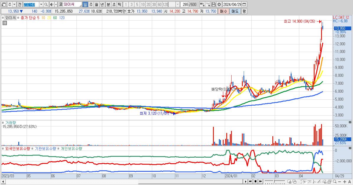 - 와이씨 (13,950원 ▼ -0.99% , 시총: 11,445억, 외국인 순매수 거래금:112억)