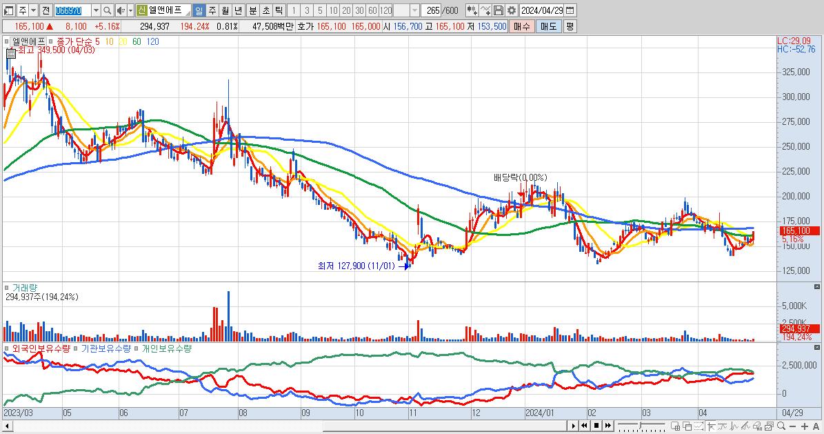 29.엘앤에프 165,100원 ▲ 5.16% (KOSPI, 066970)