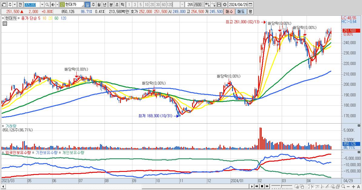 2.현대차 251,500원 ▲ 0.8% (KOSPI, 005380)