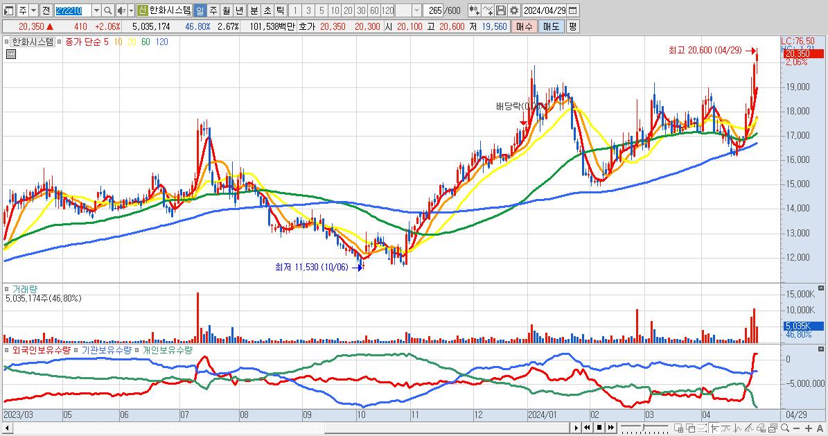 - 한화시스템 (20,350원 ▲ 2.06% , 시총: 38,445억, 외국인 순매수 거래금:93억)