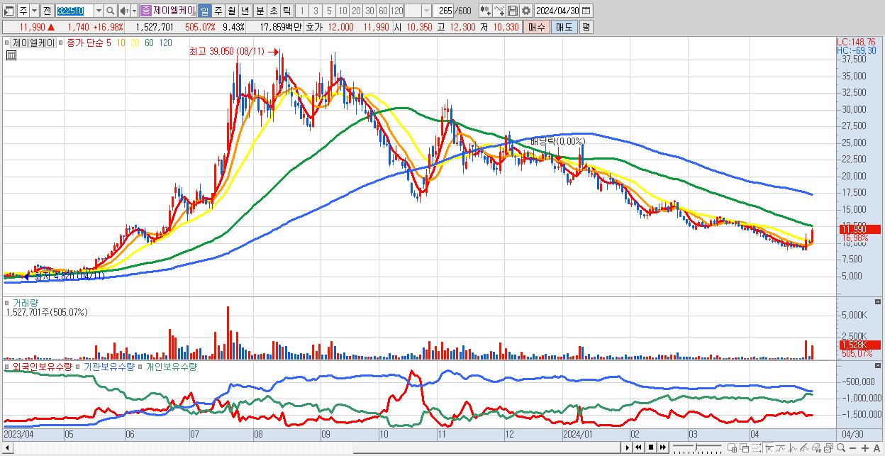 - 제이투케이바이오 (18,070원 ▲ 12.38% , 시총: 1,007억, 거래량: 1,759,762, 거래대금:319억)