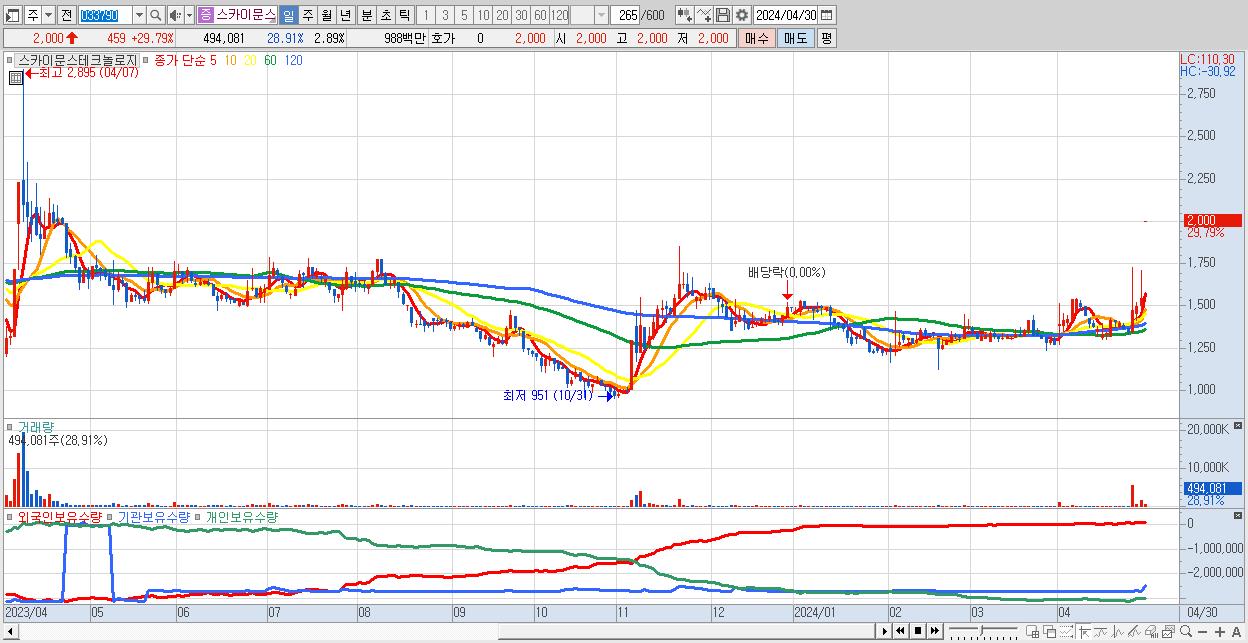 2.스카이문스테크놀로지 2,000원 ▲ 29.79% (KOSDAQ, 033790)