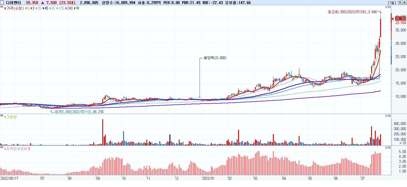5.디이엔티 (079810) 등락율 23.55%