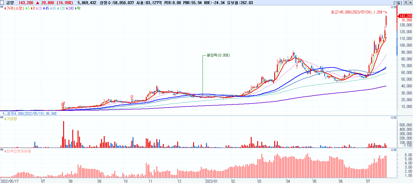 시총: 1,152억 거래량: 7,348,742 거래대금:4,080억