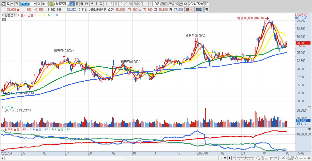1.삼성전자 78,000원 ▲ 0.65% (KOSPI, 005930)