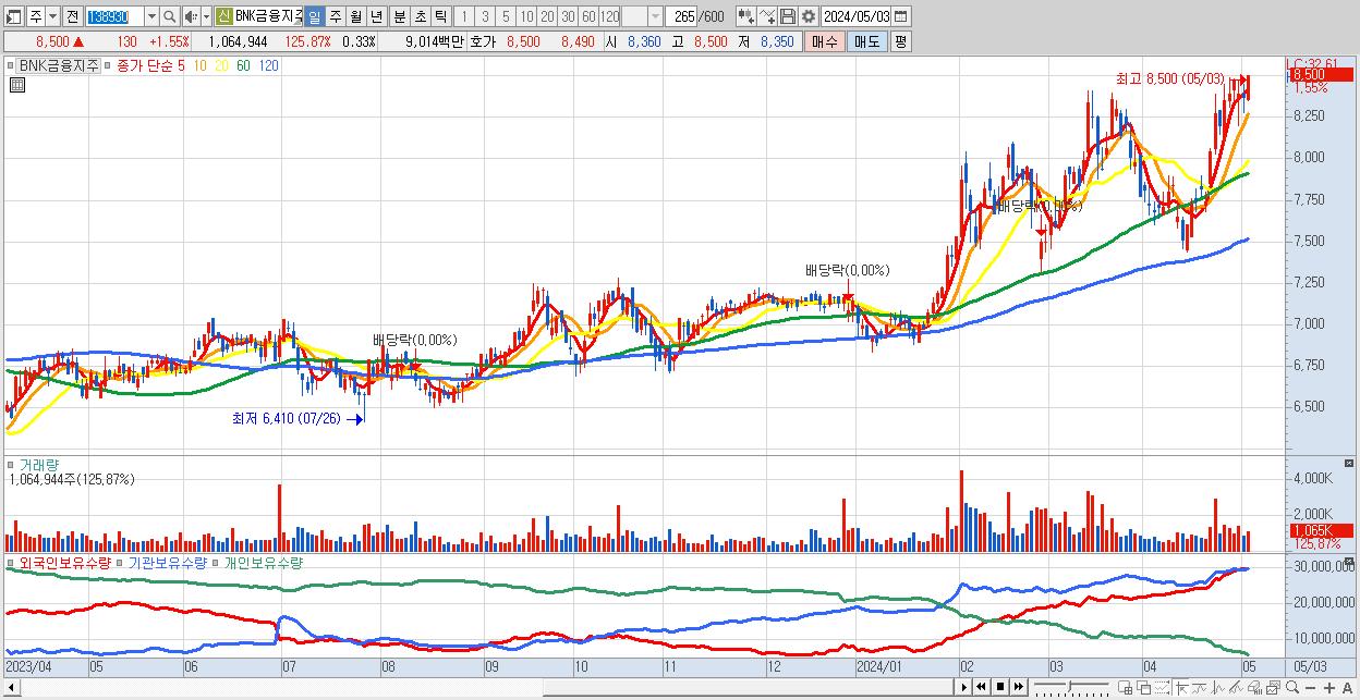 30.BNK금융지주 8,500원 ▲ 1.55% (KOSPI, 138930)