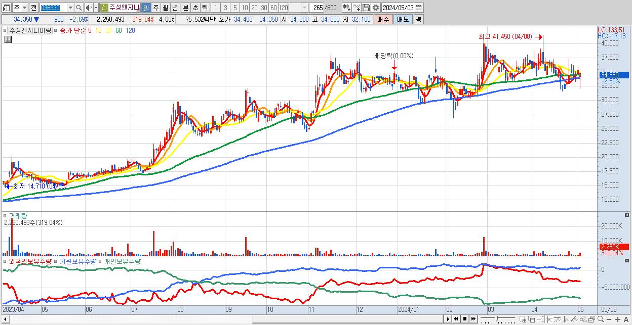 - 주성엔지니어링 (34,350원 ▼ -2.69% , 시총: 16,574억, 외국인 순매수 거래금:39억)